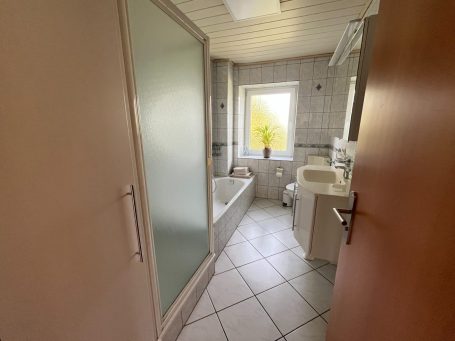 In dem angrenzenden Badezimmer können Sie es sich in der Badewanne gemütlich machen oder kurz unter die Dusche hüpfen.